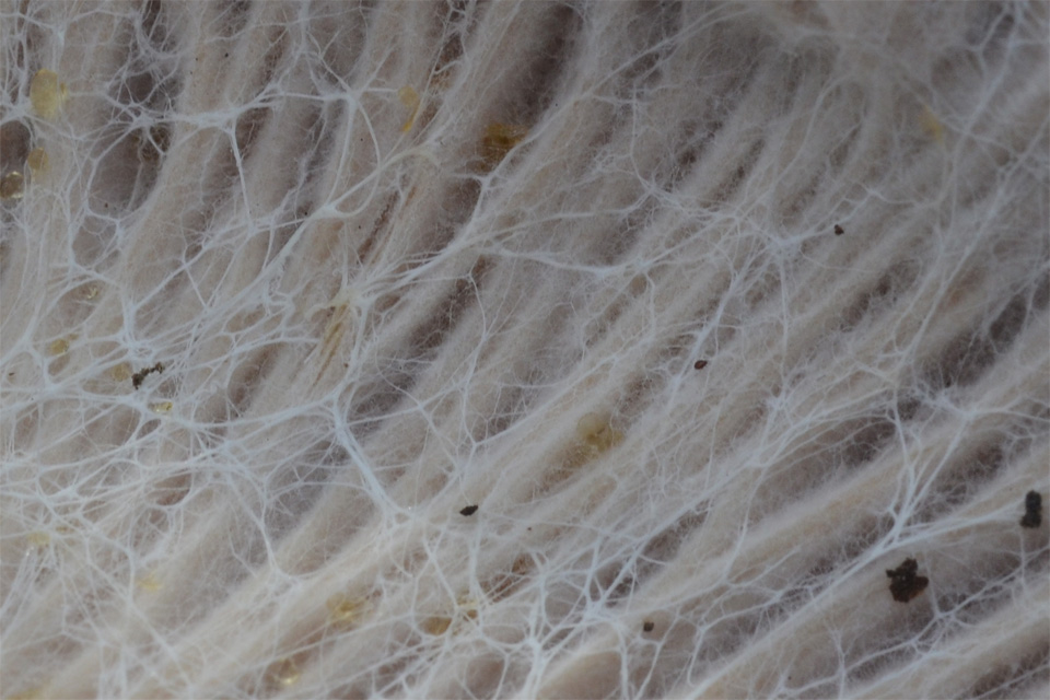 22 сентября. Барнаульский ленточный бор. Нашёл старое плодовое тело гриба-зонтика Оливье (Chlorophyllum olivieri), а когда фотографировал, заметил на нём какую-то зернистую белую плесень. Ожидается загрузка фотографий с помощью JavaScript... Ниже фрагмент фотографии "Плесень на гименофоре гриба-зонтика Оливье", масштаб 1/1: ![]() Далее я сфотографировал какой-то вероятно базидиальный гриб, микопаразит, опутавший своим мицелием плодовое тело предположительно подгруздка зеленовато-пластинчатого (Russula chloroides). Видимо, он собрался добыть из подгруздка полезные вещества, чтобы сформировать склероции. Что это за микопаразит, я пока не знаю. Ожидается загрузка фотографий с помощью JavaScript... Ниже фрагмент фотографии "Микопаразит на подгруздке зеленовато-пластинчатом 1", масштаб 1/2: ![]() Встретилась не определённая ярко-красная сыроежка с тёмной серединкой, не очень острая. Жаль, фотографию гименофора я сделал неправильно. Надо было снимать под другим углом, чтобы было хорошо видно пластинки возле ножки и как они к ней прирастают. Сам виноват, поторопился. Ожидается загрузка фотографий с помощью JavaScript... Ожидается загрузка фотографий с помощью JavaScript... Сделал несколько фотографий не определённого шампиньона. Диаметр шляпки примерно 5 см. Верхняя часть ножки тёмная. Споры созревают не одновременно, из-за этого пластинки гриба пёстрые. Полистал справочники, такого шампиньона не нашёл. А может, это и не шампиньон вовсе. Ожидается загрузка фотографий с помощью JavaScript... Ниже фрагмент фотографии "Не определённый шампиньон, гименофор", масштаб 1/1: ![]() 27 сентября. Барнаульский ленточный бор. Встретил скутеллинию щитовидную (Scutellinia scutellata). Крошечный несъедобный блюдцевидный аскомицет, живёт обычно на берёзовой гниющей древесине. Ожидается загрузка фотографий с помощью JavaScript... Новый для сайта гриб — флебия дрожащая (Phlebia tremellosa). Несъедобна. Ожидается загрузка фотографий с помощью JavaScript... На лесной дороге я заметил крошечные фиолетовые грибочки и сначала подумал, что это пецица фиолетовая. Однако при увеличении снимка стала видна пушистая структура. Это молодые плодовые тела хондростереума пурпурного (Chondrostereum purpureum). Осмотрев это место на дороге повнимательнее, я увидел, что грибочки растут на корне, местами выступающем из почвы. Примерно в метре-полутора стоял старый берёзовый пень. Хондростереум пурпурный — патогенный гриб, поражающий все виды деревьев. В середине лета на ветвях и стволах появляются розоватые бесформенные наплывы. Постепенно из них формируются сплошные массивы волнистых лиловых грибов, покрытых ворсом. Зараженные деревья подают сигнал бедствия серебристым налётом на листьях. Колонии красивых пряно пахнущих грибов убивают фруктовые деревья всего за пару лет. В Индии миколог, который занимался исследованием растительных патогенов в мёртвых деревьях, впервые в истории заразился паразитирующим на деревьях грибом хондростереумом пурпурным (Chondrostereum purpureum). У пациента не было нарушений иммунитета, в том числе ВИЧ-инфекции и диабета, и он не принимал иммуносупрессоры. Отчет о случае опубликован в журнале Medical Mycology Case Reports. Ожидается загрузка фотографий с помощью JavaScript... Ниже фрагмент фотографии "Хондростереум пурпурный", масштаб 1/2: ![]() Опять встретил сыроежку сардониксовую (Russula sardonia), сфотографировал для грибного справочника. Ожидается загрузка фото